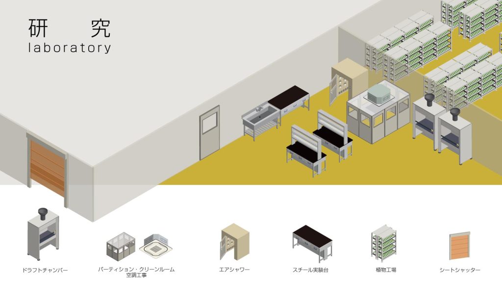 近年、注目される植物工場。多段式栽培ラックやLED照明など、生産性を高めるシステムをご提案いたします。また実験・研究設備においても、安全性と機能性のバランスに優れた機器や設備をコーディネートいたします。